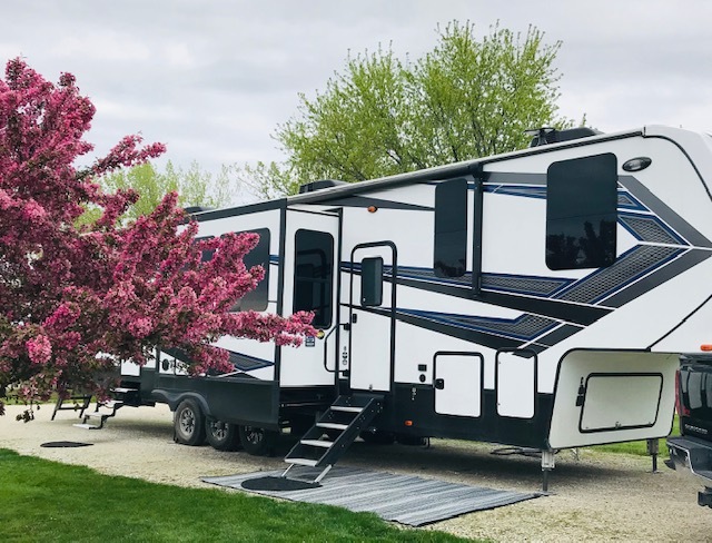 Beautiful New Rv Patio Site At The Lena Koa Holiday Campsite Setup Rv Campsite Camping Spots